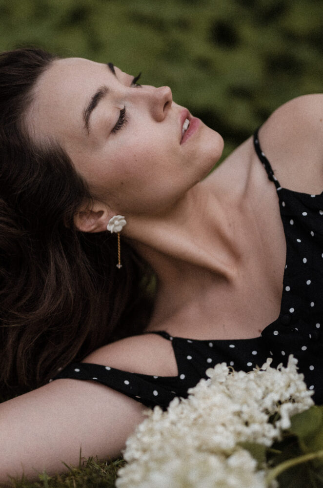 - Wielkość kolczyków: długość 6 cm, średnica porcelanowego elementu ~2 cm, długość sztyftu 1 cm