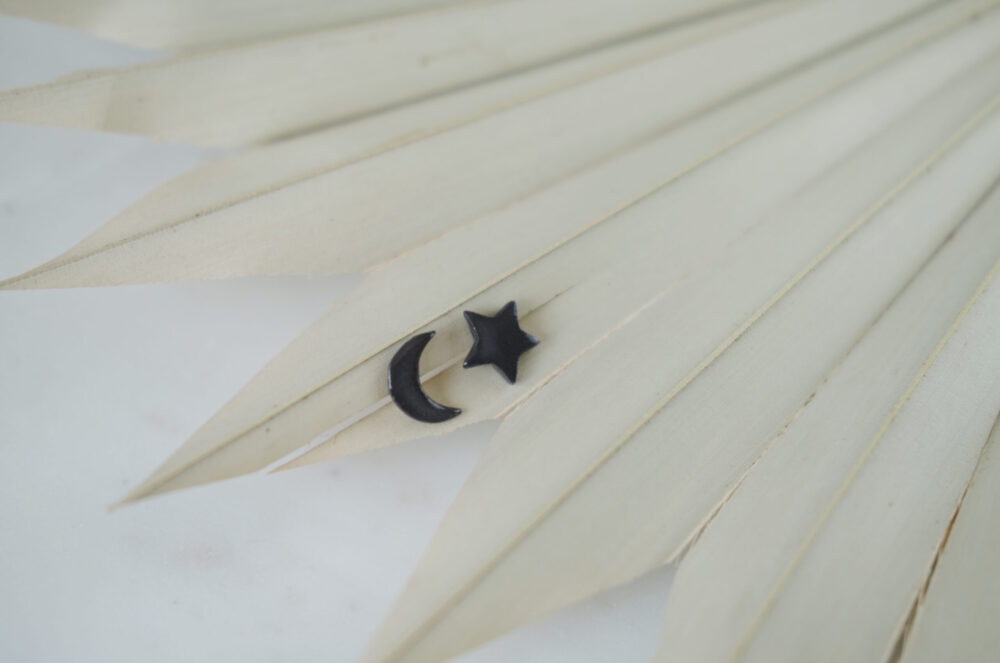 Kolczyki gwiazda i księżyc z czarnej porcelany