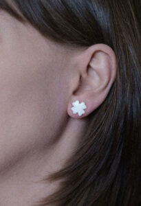 Porcelanowe kolczyki w kształcie czterolistnej koniczyny. Symbol szczęścia do noszenia na co dzień.