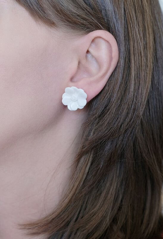 Kolczyki kwiaty z białej porcelany. Eleganckie i romantyczne jak wiosenny ogród.