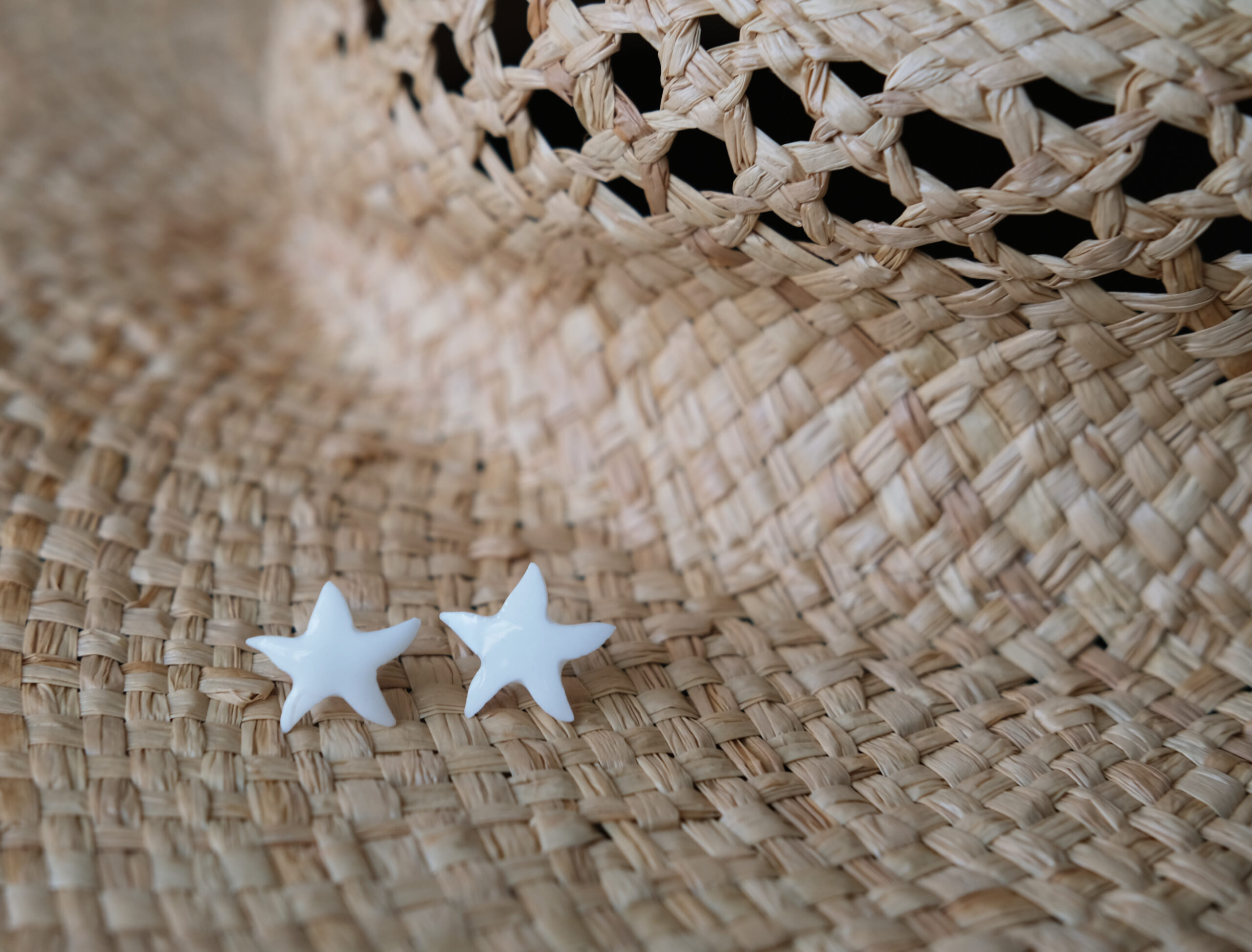 Kolczyki z białej porcelany w kształcie rozgwiazdy przypominające najpiękniejsze chwile nad ciepłym morzem.