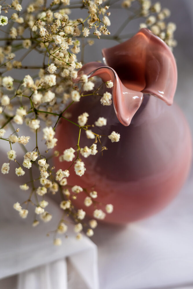 Jasnoróżowy wazon vintage ze ślimaczkami
